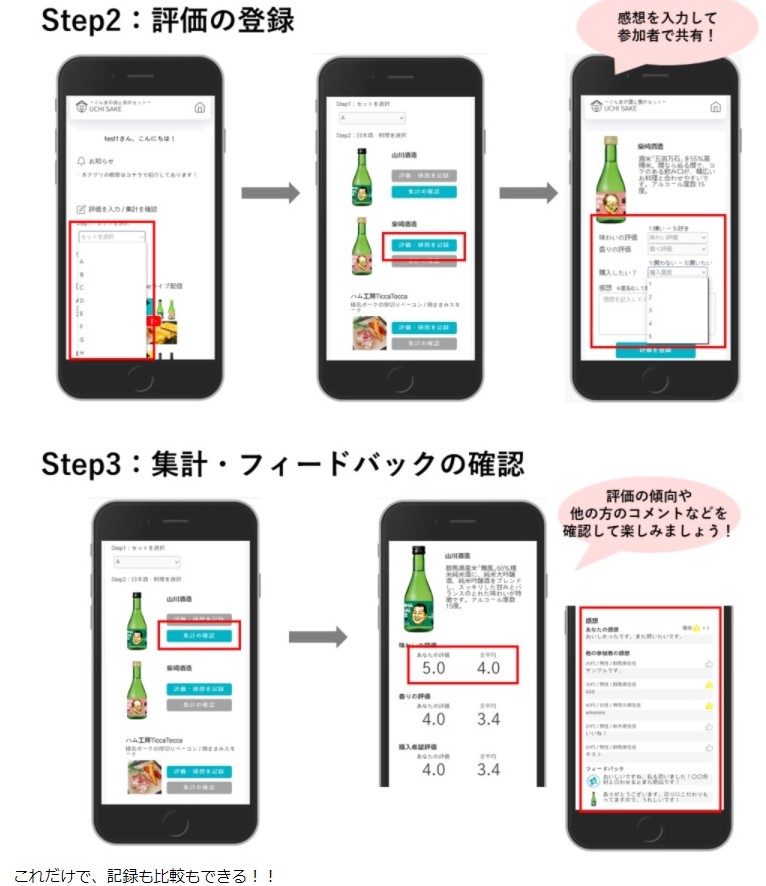 「参加型」のイベントにして、「自分はこっちが好み」「自分は、この食に合うと思った」といった感想をリアルタイムで共有して楽しめる仕組みにしたい。
