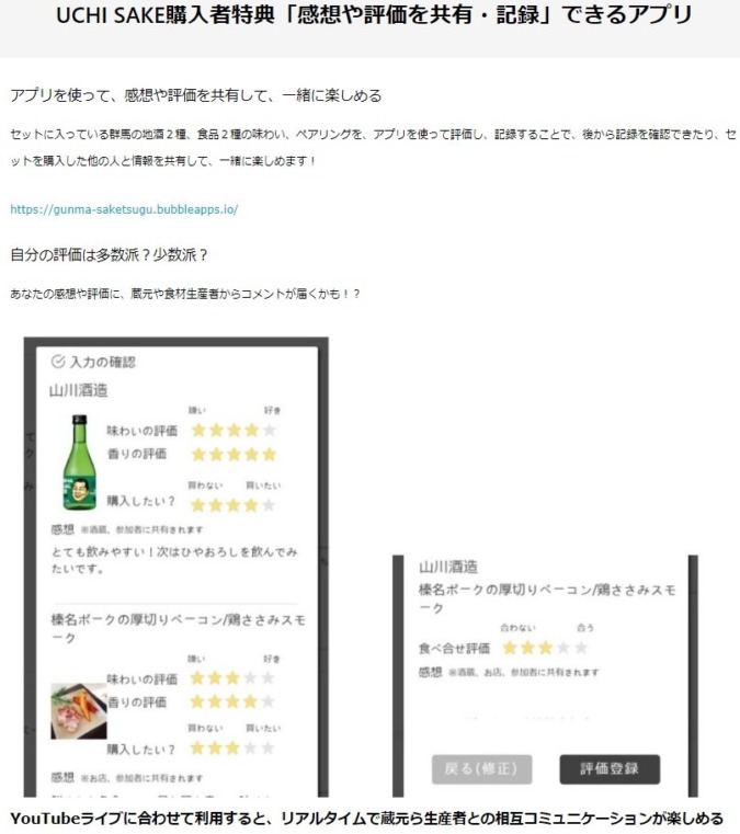 参加者は、各セットの作り手が出演するYouTubeライブ配信をリアルタイムで視聴しながら、このアプリをスマートフォンなどで操作しながら参加することで、リアルタイムに、自分が入力した感想や評価が運営サイドに届いて、参加者全体の結果が発表されます。