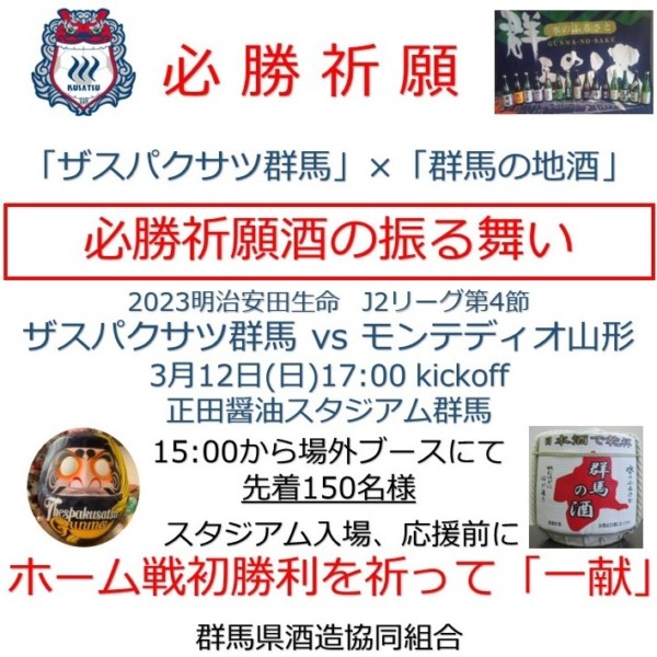 9月27日(土)サッカーザスパ群馬のJリーグ公式戦会場で「群馬の地酒」