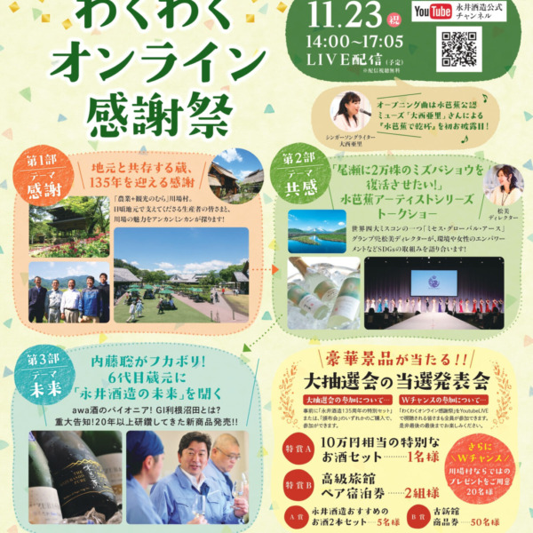 特別限定酒も!11月23日(祝)永井酒造創業135周年記念オンラインイベント