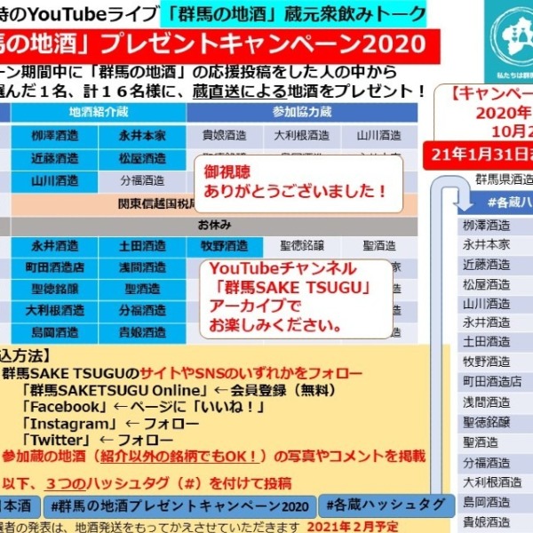 【ラスト2週間】群馬の地酒プレゼントキャンペーン2020