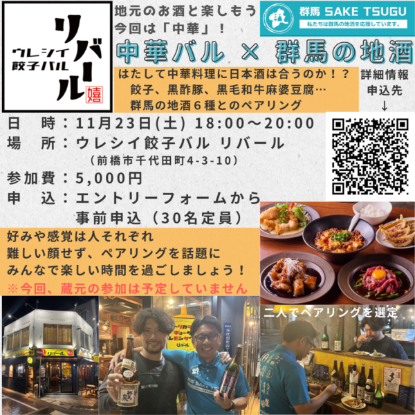 11/23(土)中華バル×群馬の地酒ペアリングイベント