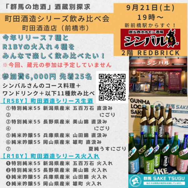 9/21(土)19時~町田酒造シリーズ飲み比べ会@シンバル