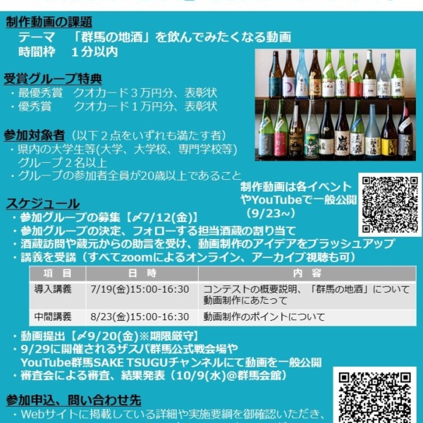 「群馬の地酒」動画コンテスト2024参加大学生グループ募集
