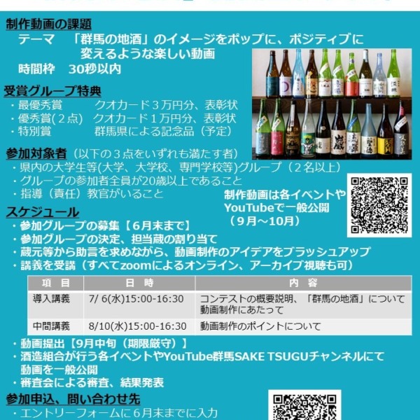 「群馬の地酒」動画コンテスト2022の大学生等グループのエントリー開始