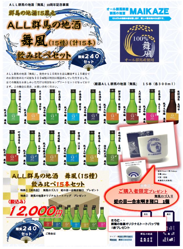 群馬県卸酒販(株)さんから、オール群馬の地酒「舞風」全15種類300mlセット商品の御案内です。