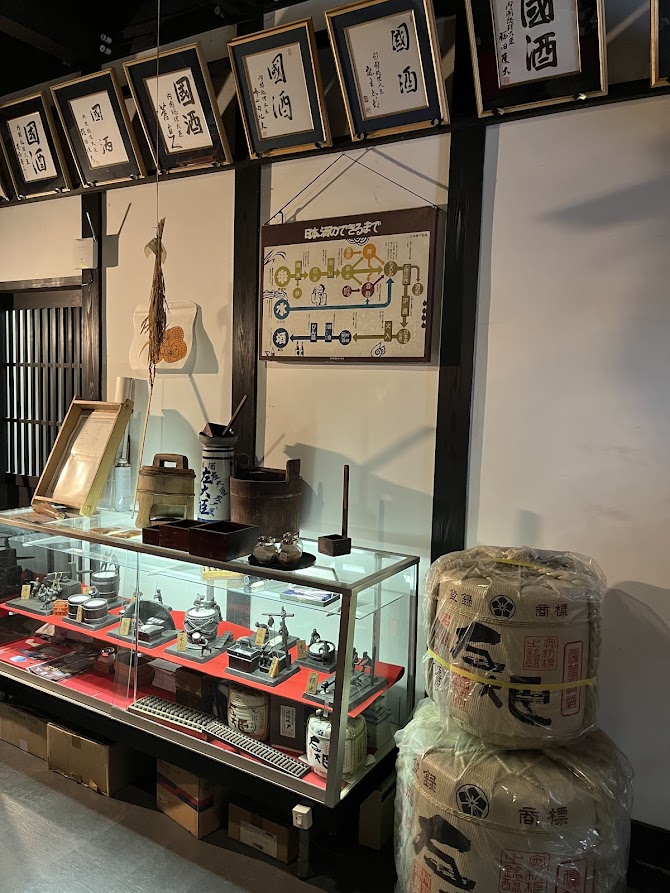 蔵に入ると、右手には歴代の内閣総理大臣が書いた「國酒」の色紙がズラリと並び、上を見上げると高くまで広がる空間が圧巻です。