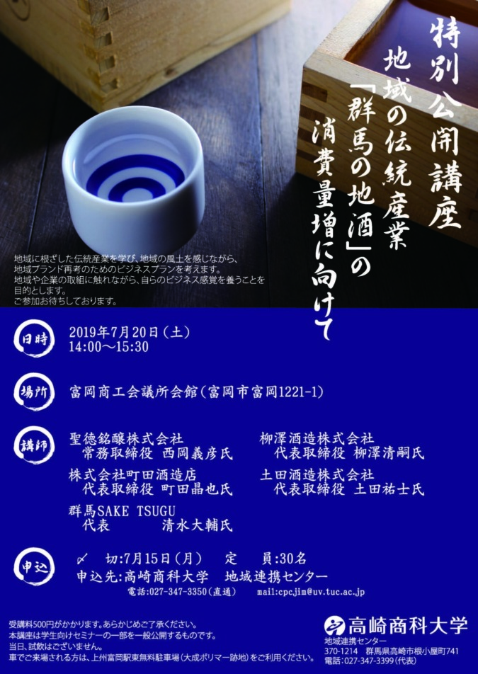 2019年春に、県庁で創業支援を担当した際お世話になった高崎商科大学の田中敬幸准教授に企画を提案させていただきました。