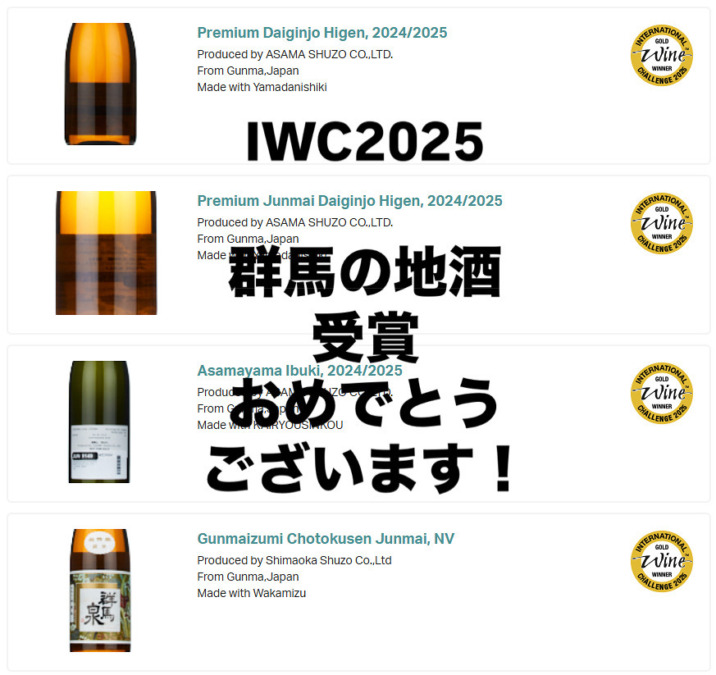 IWC2025受賞蔵に今年も「群馬の地酒」!