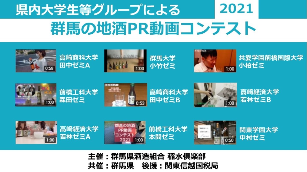 群馬県酒造組合稲水倶楽部主催、群馬県共催、関東信越国税局後援による「群馬の地酒PR動画コンテスト2021」