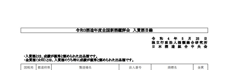 令和3酒造年度全国新酒鑑評会 入賞酒目録 (nrib.go.jp)