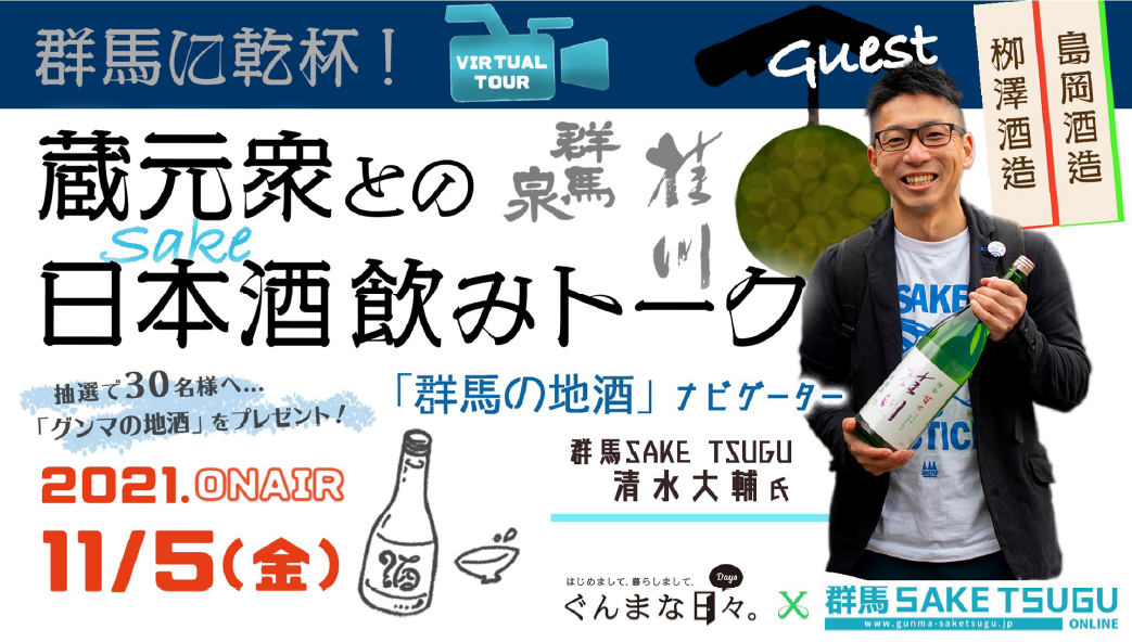 追記!【オンライン】「群馬に乾杯!~蔵元衆との日本酒飲みトーク~」を開催します(11/5) | はじめまして、 暮らしまして、ぐんまな日々 (pref.gunma.jp)