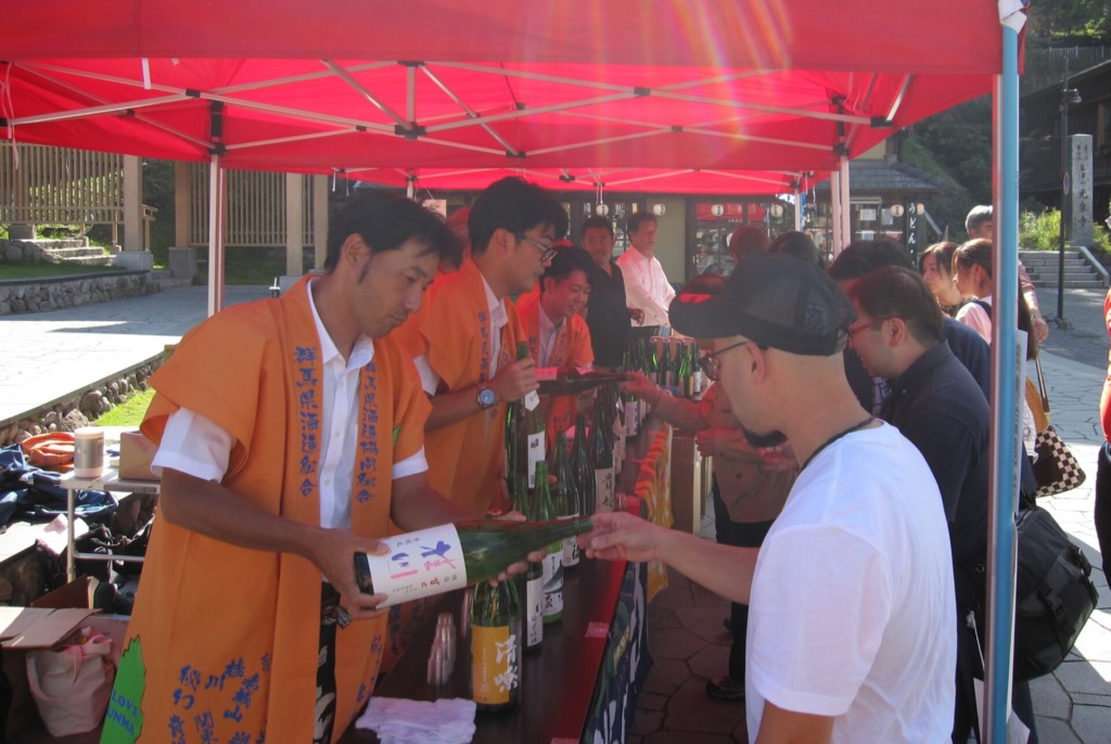 草津温泉の湯畑前にて「群馬の地酒」試飲会