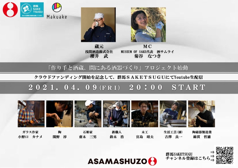プロジェクト始動を記念したトークイベントを群馬SAKE TSUGUのYouTubeチャンネルにて、今週金曜(4/9)の夜に生配信します!