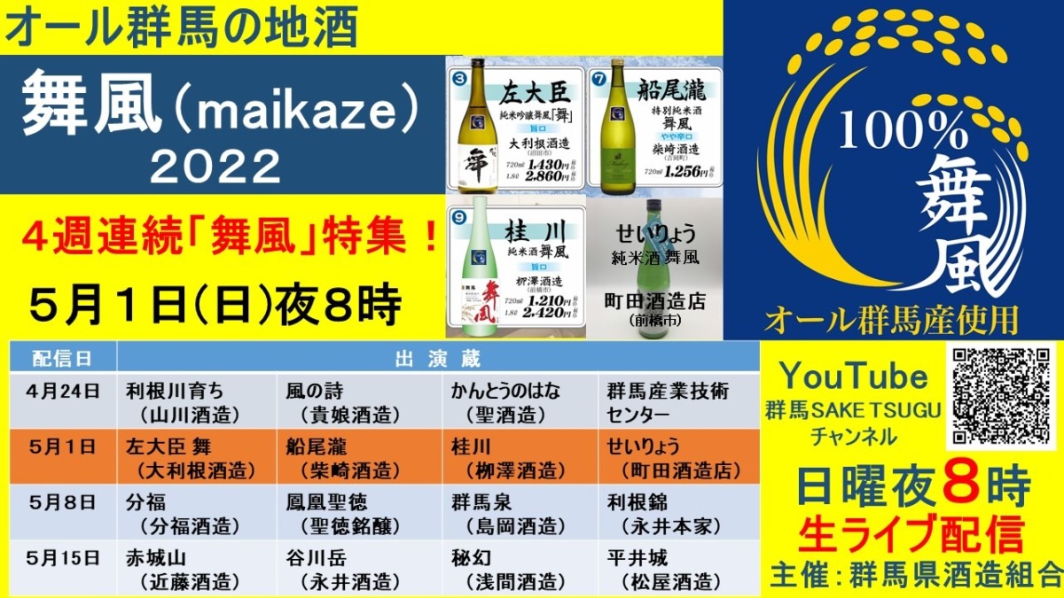 毎週日曜夜8時からYouTubeで生ライブ配信している「群馬の地酒」蔵元衆飲みトークも、4週連続で「舞風」特集を行います。