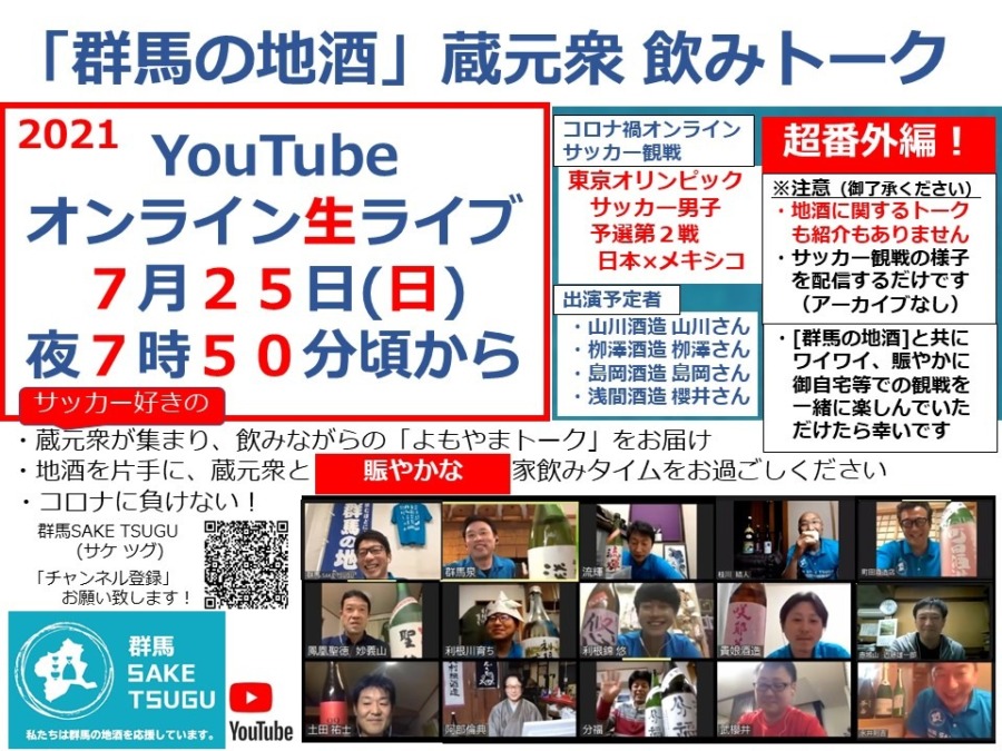 「群馬の地酒」と共に、ワイワイ、賑やかに、各御自宅等での観戦を一緒に楽しんでいただけたら幸いです。