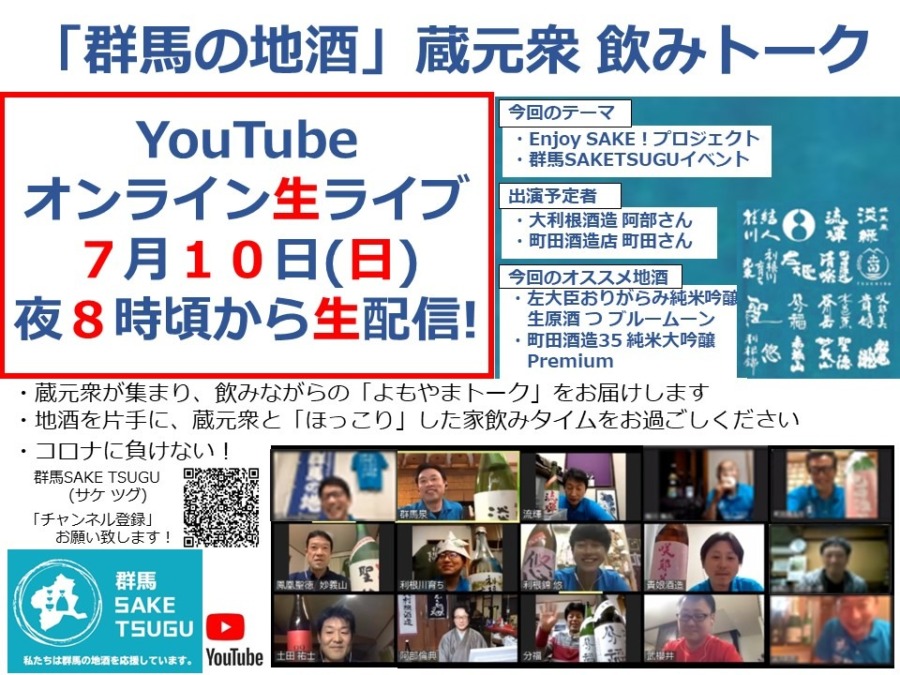 新型コロナウィルスの影響で、「群馬の地酒」に関するイベントが軒並み中止となる状況を受けて、何かできることはないかと群馬SAKE TSUGUが企画し、蔵元に声をかけて開催するものです。