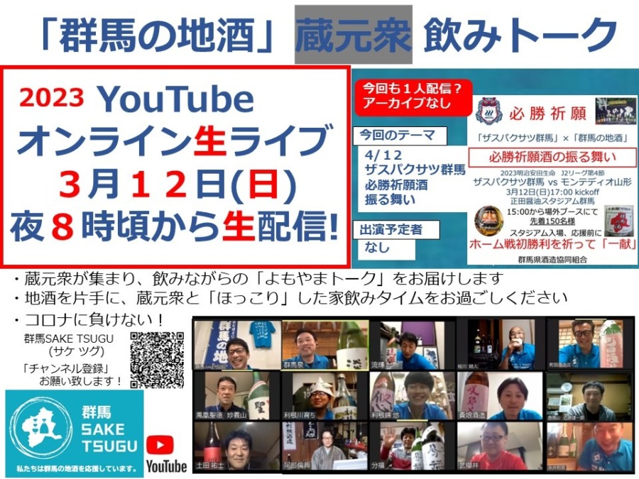 「群馬の地酒」蔵元・杜氏による飲みながらの生トークライブ配信を観ながら、楽しい家飲み時間を過ごしいただけたらと思います。