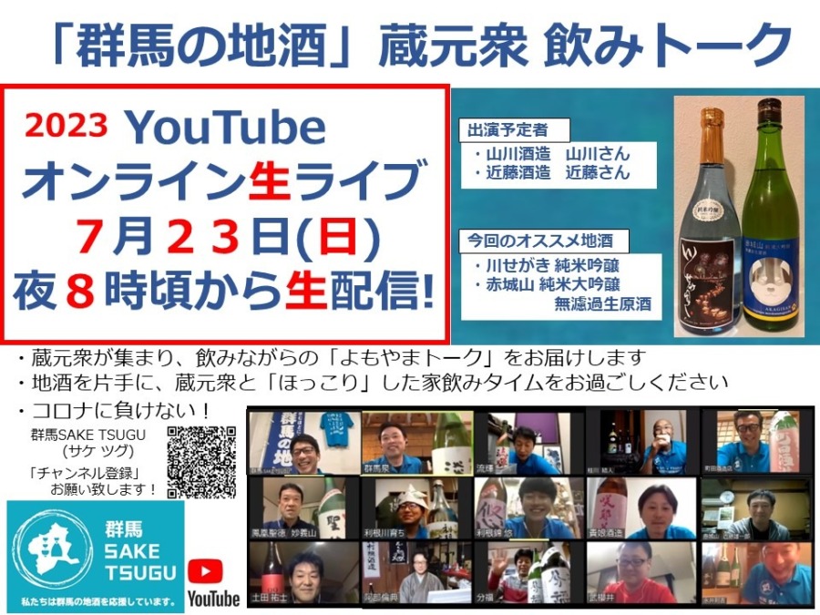 「群馬の地酒」蔵元・杜氏による飲みながらの生トークライブ配信を観ながら、楽しい家飲み時間を過ごしいただけたらと思います。